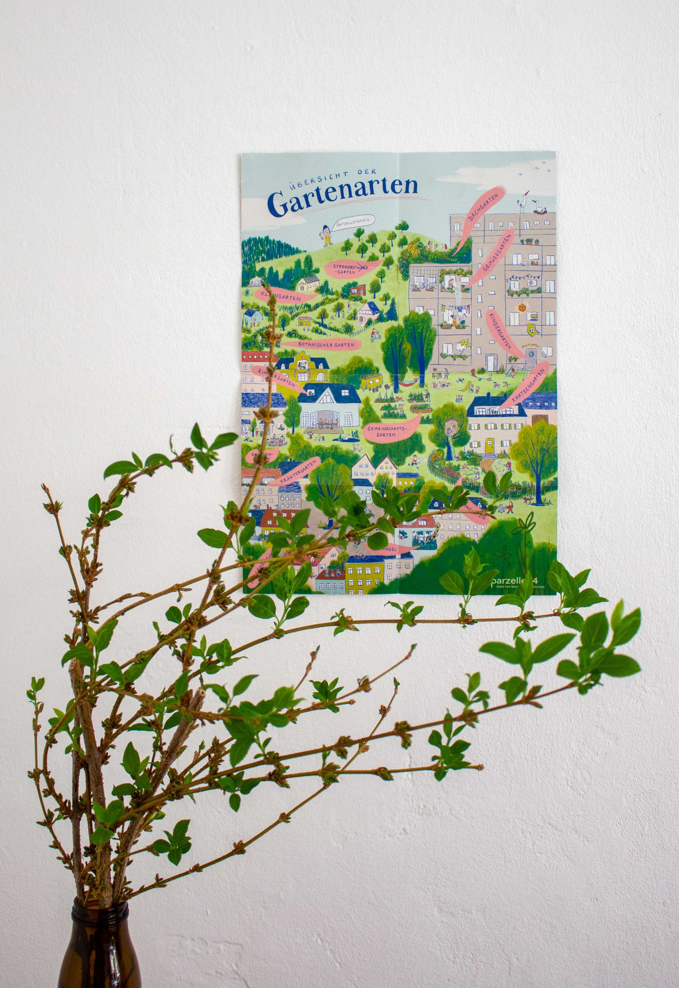 Pünktlich zum Online-Gang unserer Website haben wir dieses Falt-Blatt-Plakat an Kund:innen und Freund:innen verschickt, um unseren öffentlichkeitswirksamen Anfang als parzelle34 zu feiern. Ziel war es, kein einfaches Werbemittel zu gestalten, sondern ein Mini-Zine, in dem wir unsere Gedanken zu Anfängen – auch in schwierigen Zeiten – verarbeitet haben und mit dem wir ein wenig positive Energie weitergeben wollen. Obendrauf zeigen wir, wie unsere jeweiligen Spezial-Disziplinen (klassisches Grafikdesign und Illustration) ineinander greifen und sich ergänzen können.