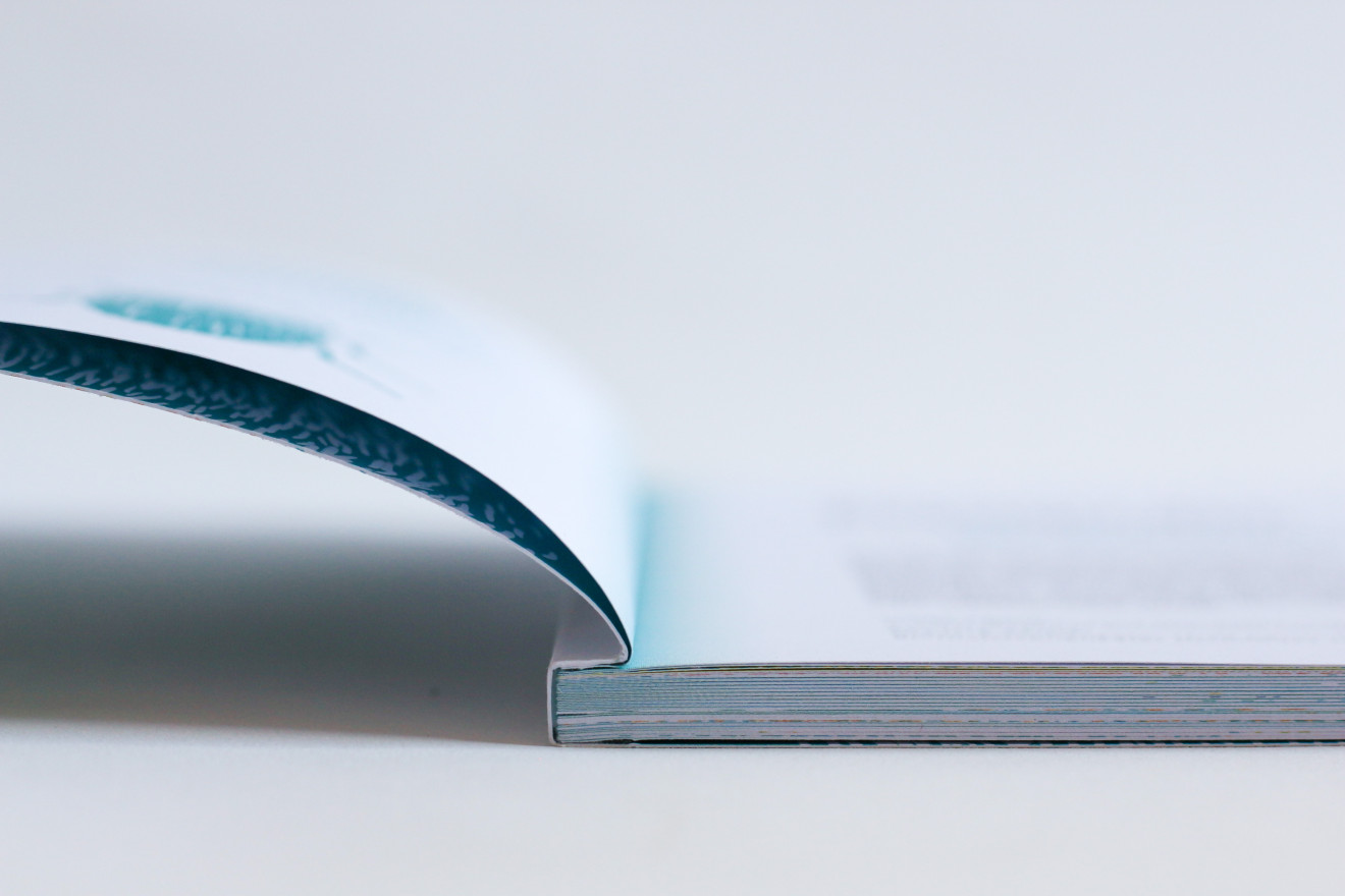 Das kühle, satte Türkis dominiert in der gesamten Publikation und wird lediglich durch andersfarbige Schmuckelemente ergänzt. Ganz bewusst haben wir uns gegen die "erwartbaren Naturschutz-Farben" Grün und Gelb entschieden. Der Jahresbericht soll auch in der Farbigkeit frisch, modern und spannungsvoll wirken.